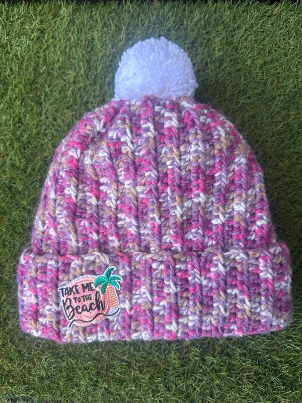 Ręcznie robiona czapka z miękkiej, prążkowanej włóczki w odcieniach fioletu, różu i bieli. Inspirowana stylem surf & nature – ciepła, wygodna i niepowtarzalna. Idealna na chłodne dni, po sesji na wodzie i na co dzień. Rozmiar uniwersalny. Podszyta miękkim polarkiem i z pomponem. Wysokość czapki (mierzona bez pompona) 23 cm.